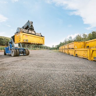 Wir können noch mehr Beispiele nennen: Mithilfe hochmobiler Mischtechnik stellen wir unsere recycelten Produkte direkt auf Ihrer Baustelle her. Zum Beispiel Schottertragschichten für den Straßen- oder Planumschutzschichten für den Gleisbau. Ebenso sind wir Experten für den Umschlag von Schüttgütern und Waren vom LKW auf die Schiene und umgekehrt.